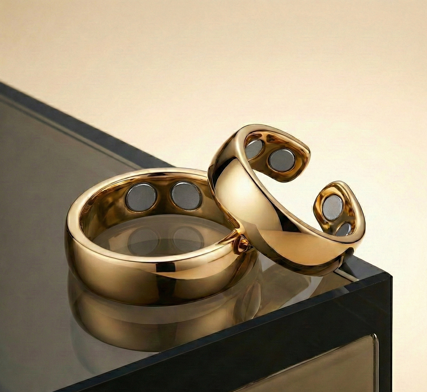 Der innovative Wohlfühl-Ring, der Magnettherapie und Akupressur kombiniert, um die körpereigene Balance zu unterstützen – dezent und elegant.